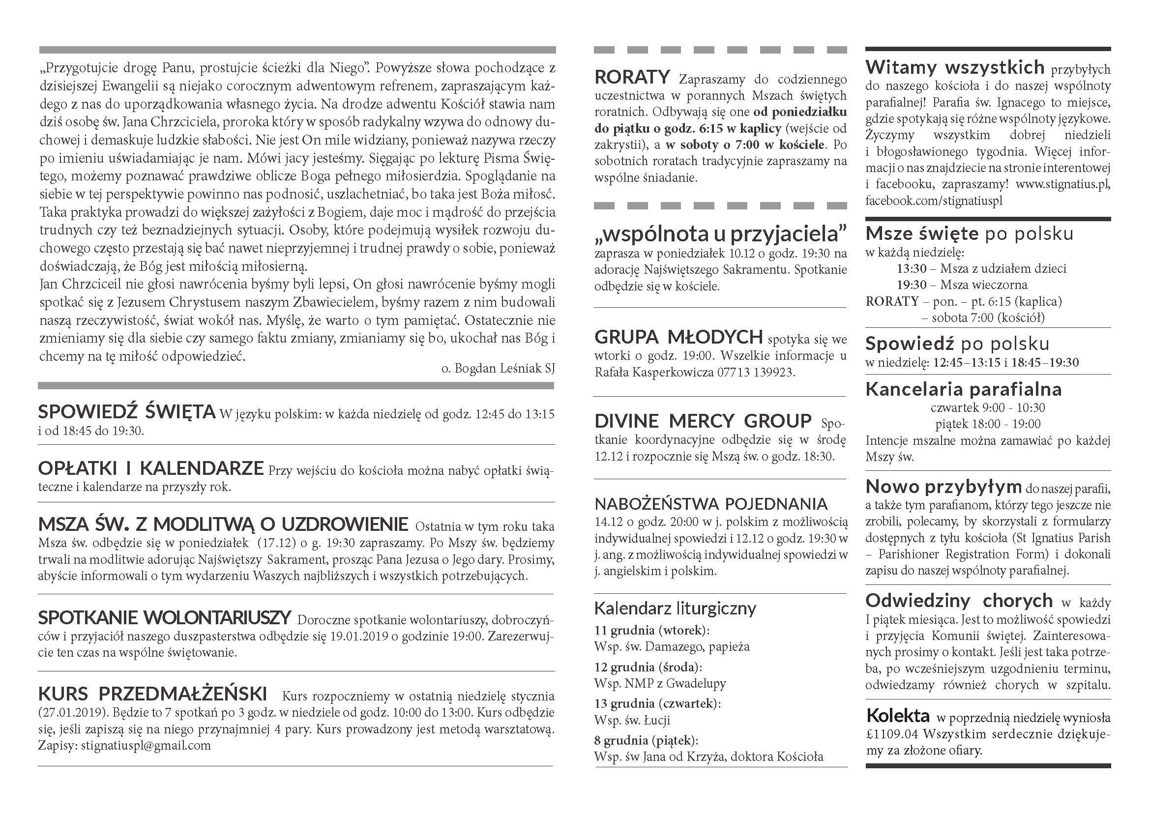 Biuletyn parafialny na II Niedzielę Adwentu 9.12.2018